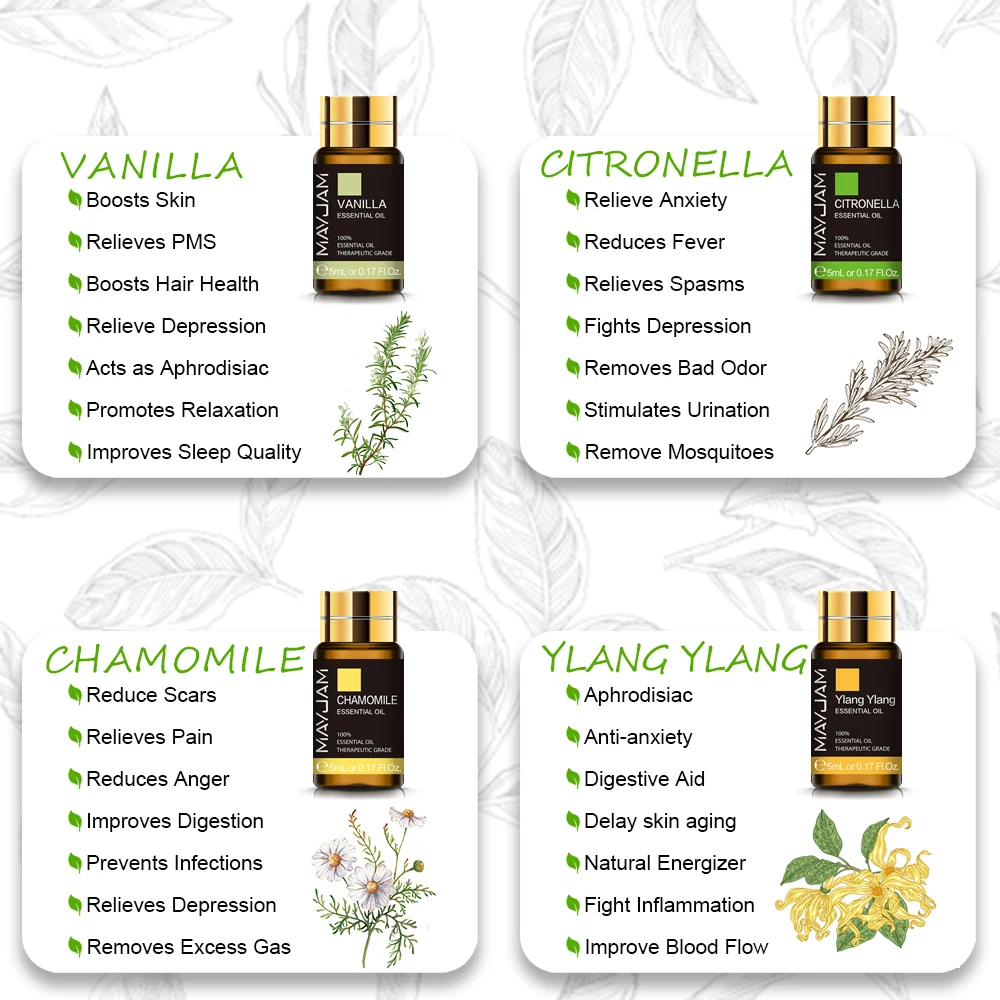 Эфирное масло для диффузора, 5 мл, увлажнитель, лаванда, ваниль, эвкалипт, жасмин, сандаловое дерево, мятные ароматические масла