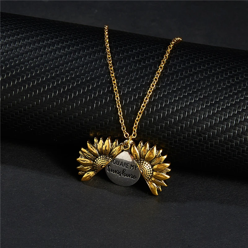 Ожерелье DoreenBeads в форме сердца подсолнуха, античное золото, серебро, Скрытое послание "Ты мое солнце", можно открыть длиной 52 см, 1 шт.