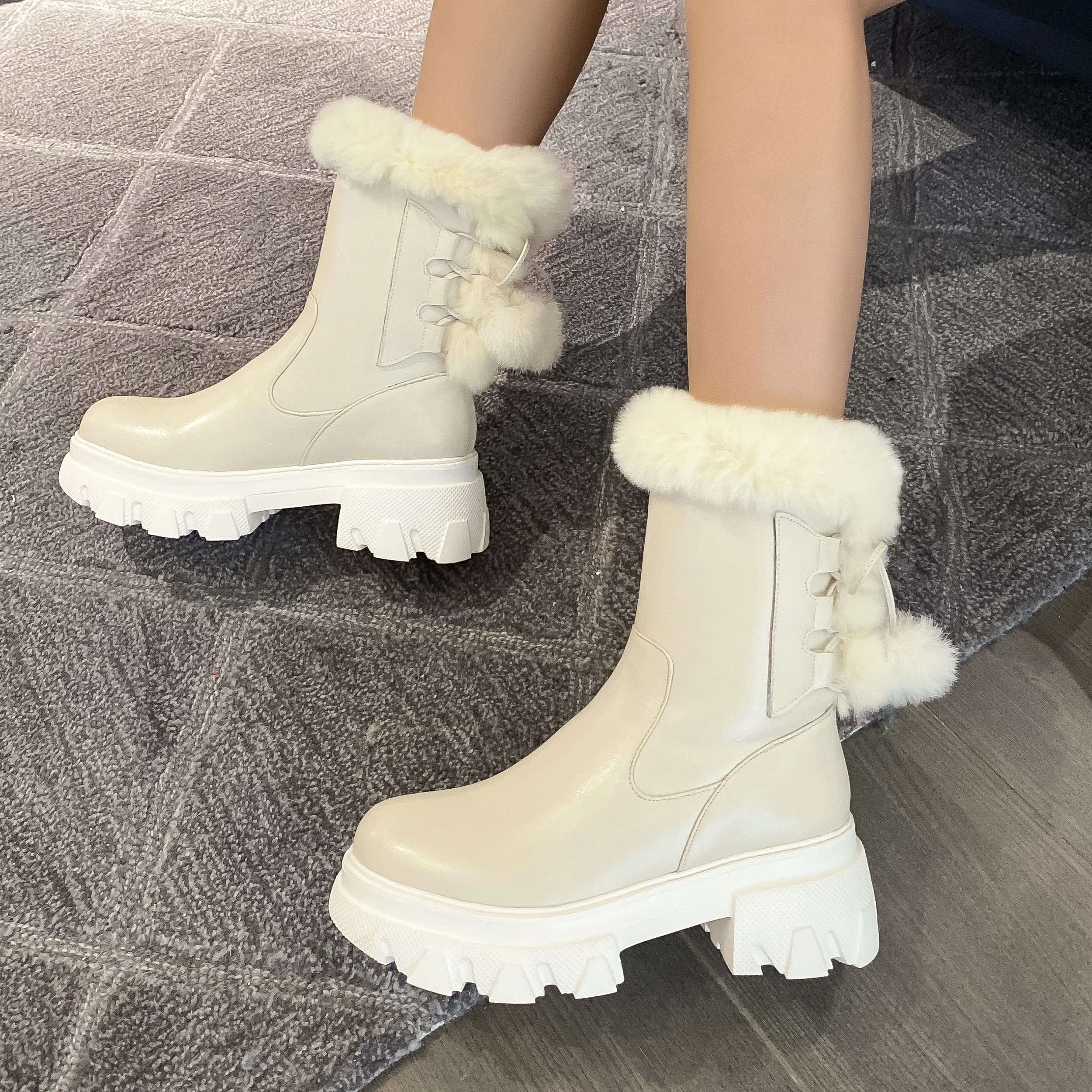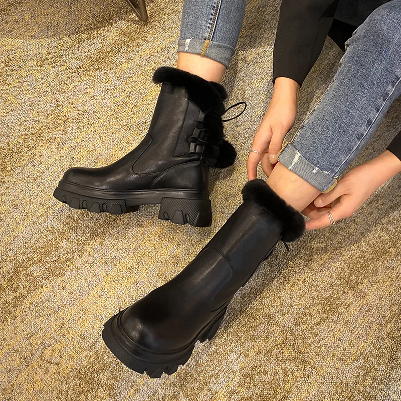 Женские ботинки ботильоны из натуральной кожи с круглым носком обувь на высоком толстом квадратном каблуке женские ботинки с натуральным кроличьим мехом, p395