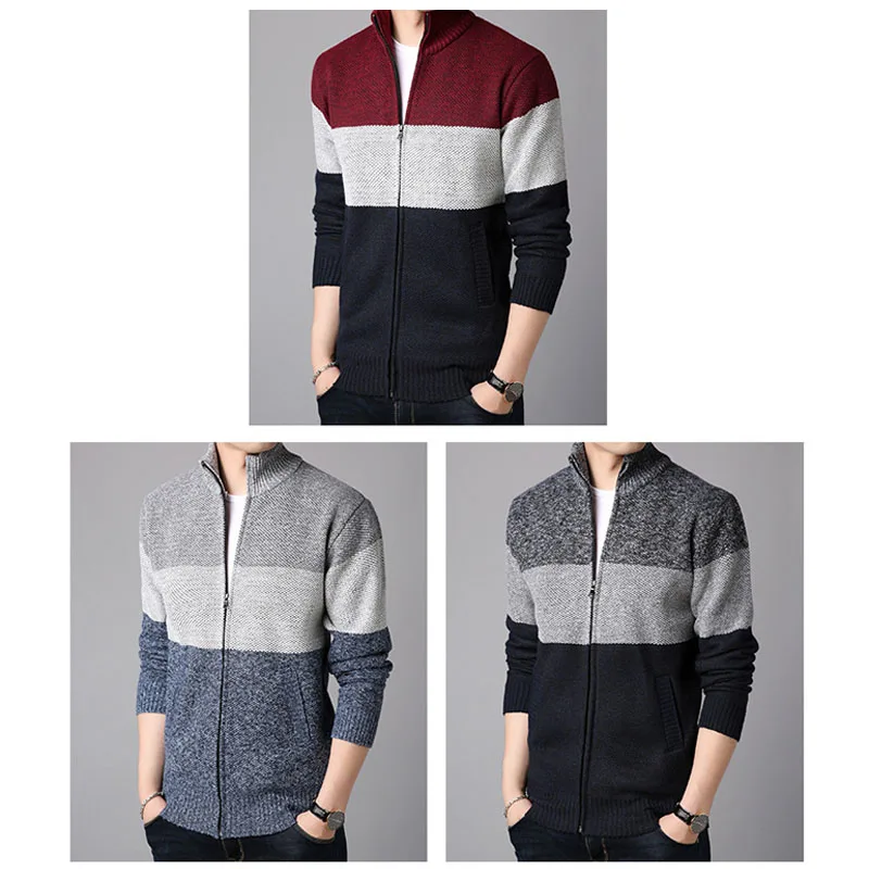 Свитер, пальто, мужской зимний плотный теплый флисовый кардиган 2021, джемперы, мужские полосатые свитеры, куртки, мужская одежда с шерстяной подкладкой MY275