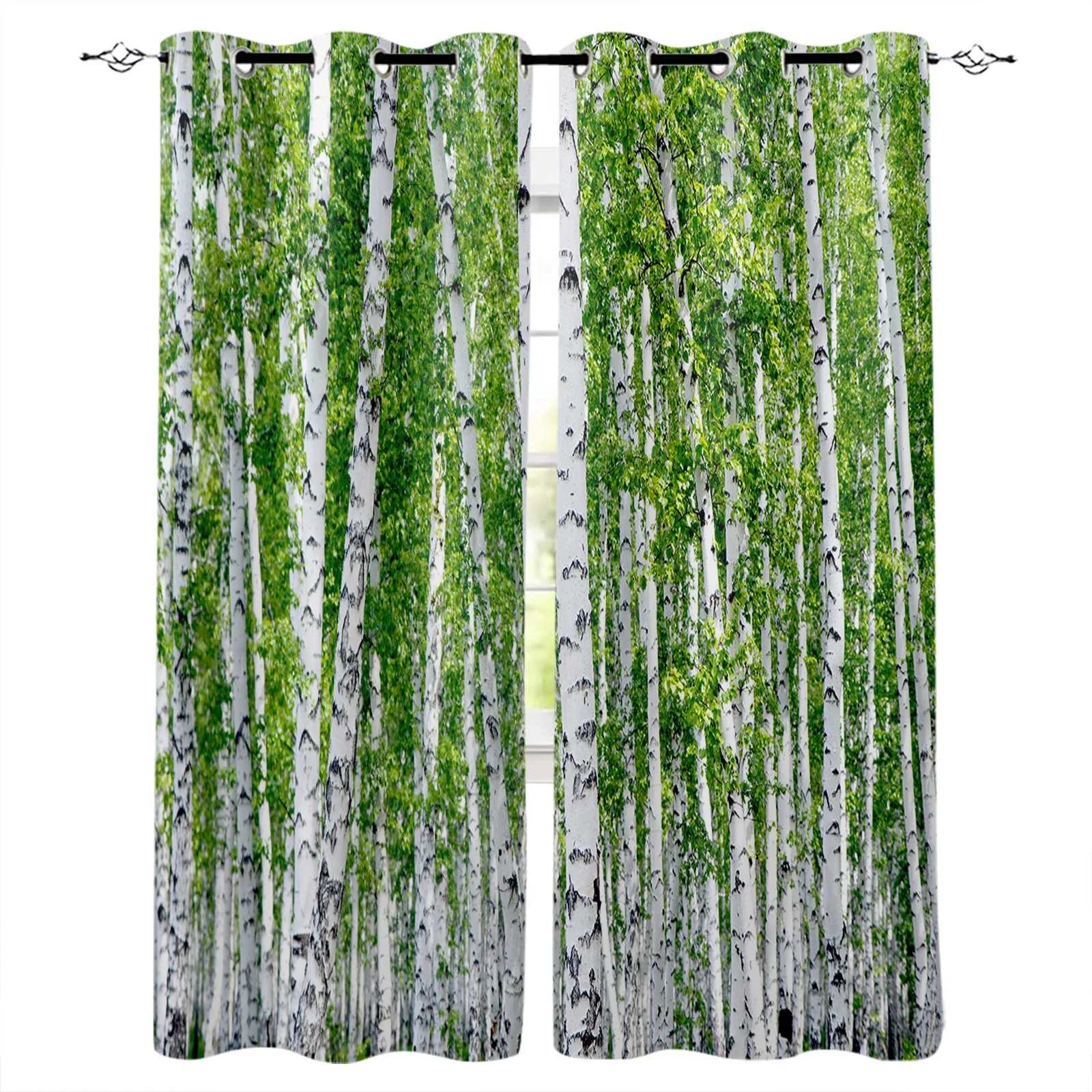 Занавески из березы, свежие зеленые листья, Летний лес, деревенский пейзаж, пышное экологическое изображение, занавески для окон гостиной, спальни