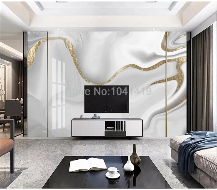 Настенные обои на заказ, современные 3D обои с изображением золотых линий, джаз, белого мрамора, гостиной, ТВ, дивана, абстрактное искусство, домашний декор