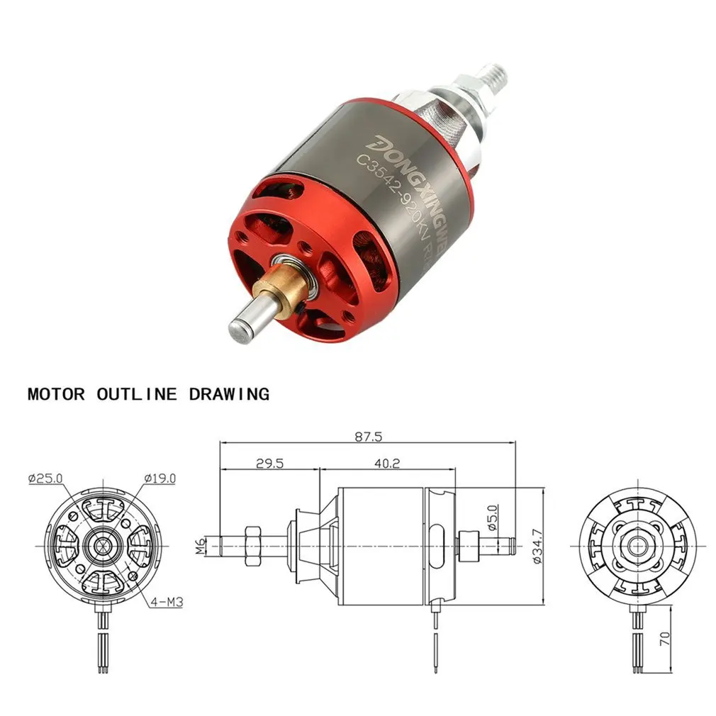 Бесщеточный двигатель DXW 1200KV800KV930KV для радиоуправляемых FPV запчастей для летательных аппаратов с неподвижным крылом