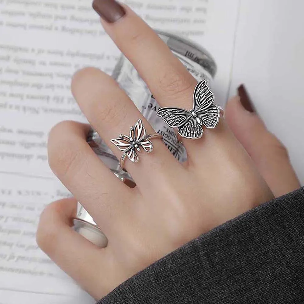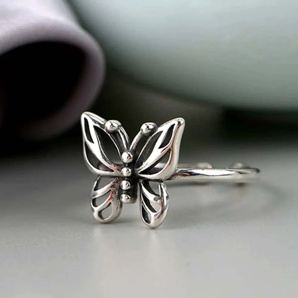 Кольцо женское, в стиле ретро, с вырезами и бабочками