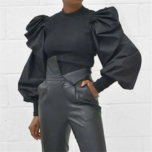 Женская блузка с пышными рукавами, черная, белая однотонная блузка в стиле ретро, весна-осень, 2020