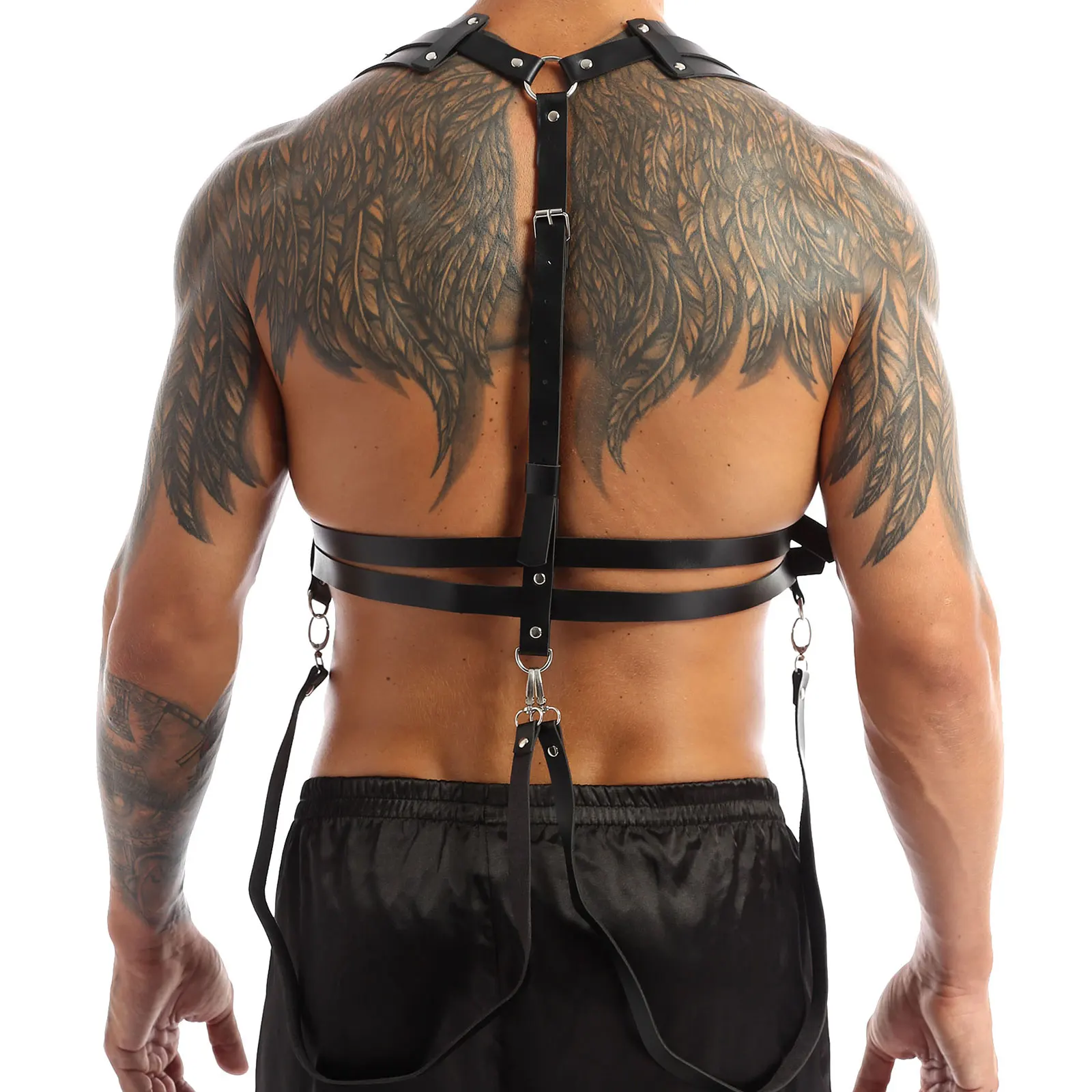 Черный модный мужской Регулируемый аксессуар нагрудный ремень с пряжкой из искусственной кожи в стиле панк готика металлическое уплотнительное кольцо Haler