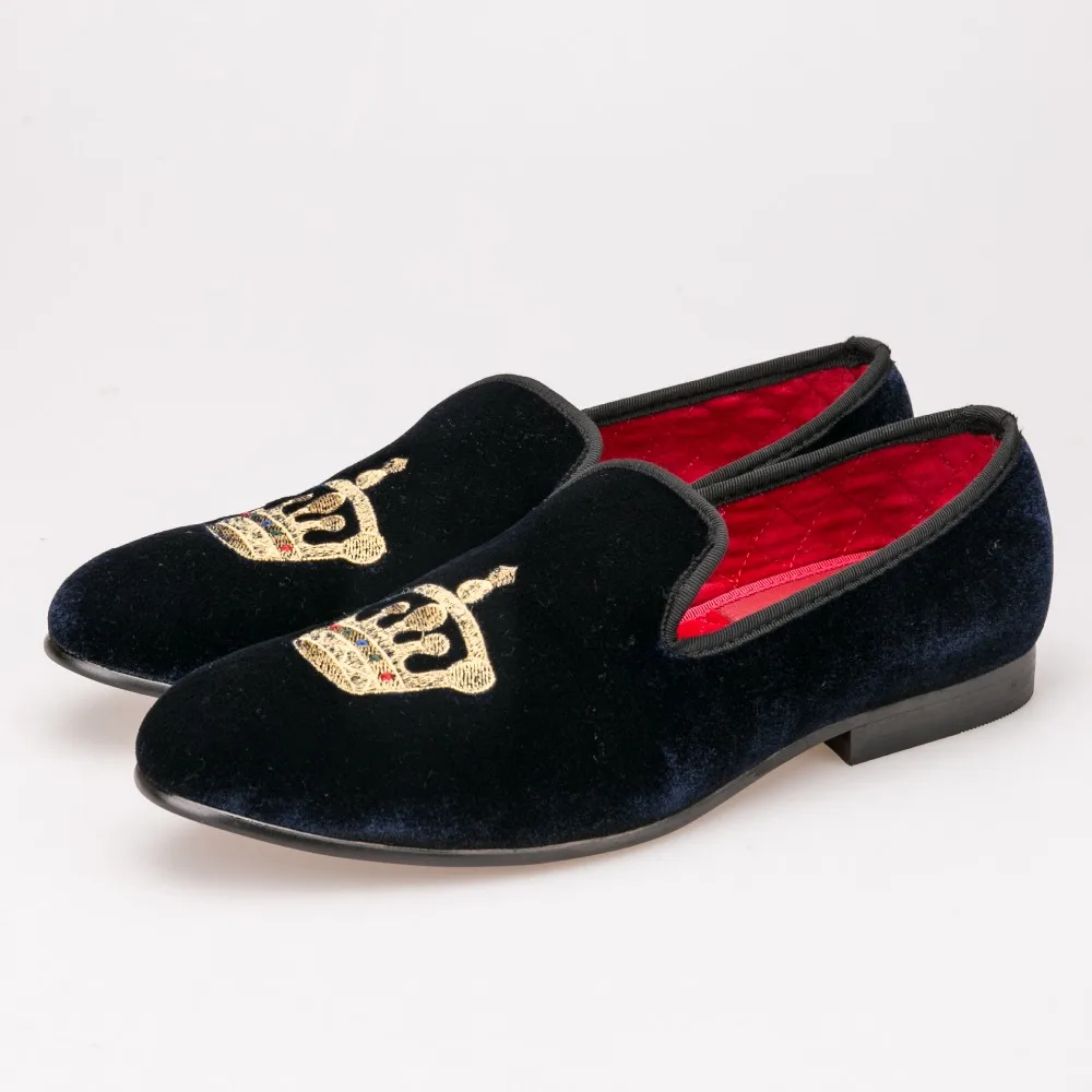 Бархатные туфли, модные мужские туфли на плоской подошве с золотой короной, свадебные и вечерние чные туфли, мужские лоферы, Sizeus6-16 г., Бесплатная доставка
