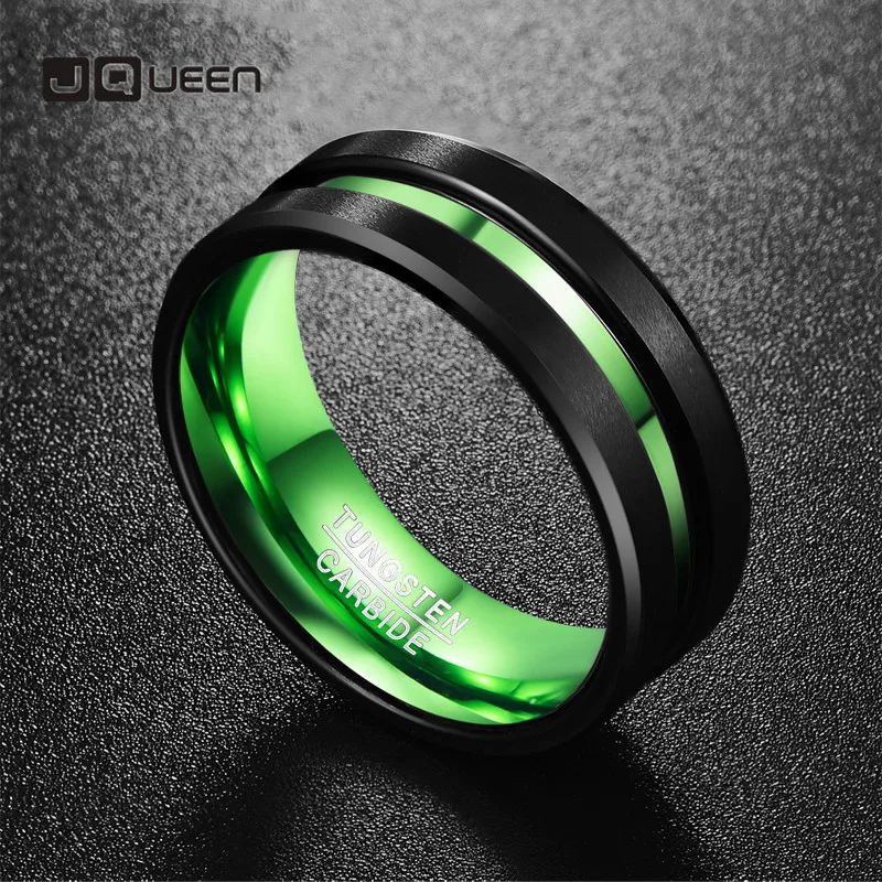 Мужское кольцо из карбида вольфрама с черной матовой отделкой, зеленый Центровой паз, полированный скошенный край, комфортный крой, размер 6-16