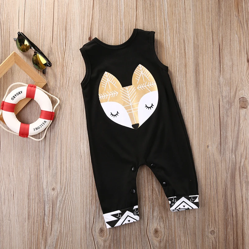 Для маленьких девочек; Комбинезон для младенцев; Одежда для мальчиков без рукавов с мультипликационным принтом Лиса для новорожденных, Детский комбинезон для малышей цельный сарафан,