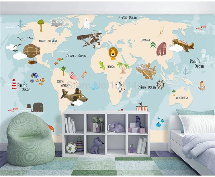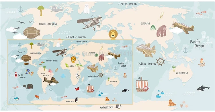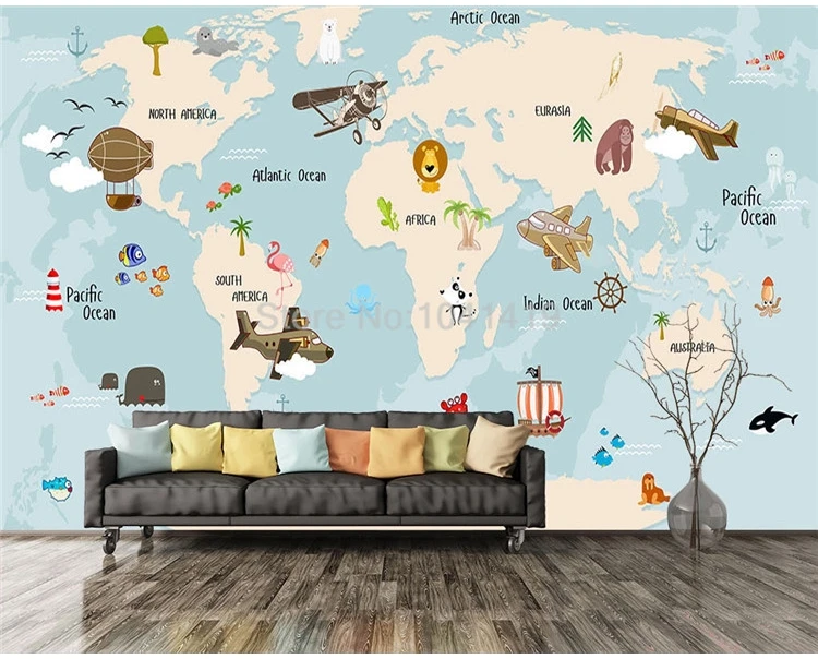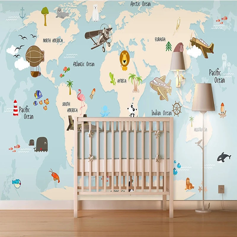 Пользовательские обои 3D Винтаж рисованная морская карта животные Дети спальня фон настенная живопись Papel де Parede 3 D