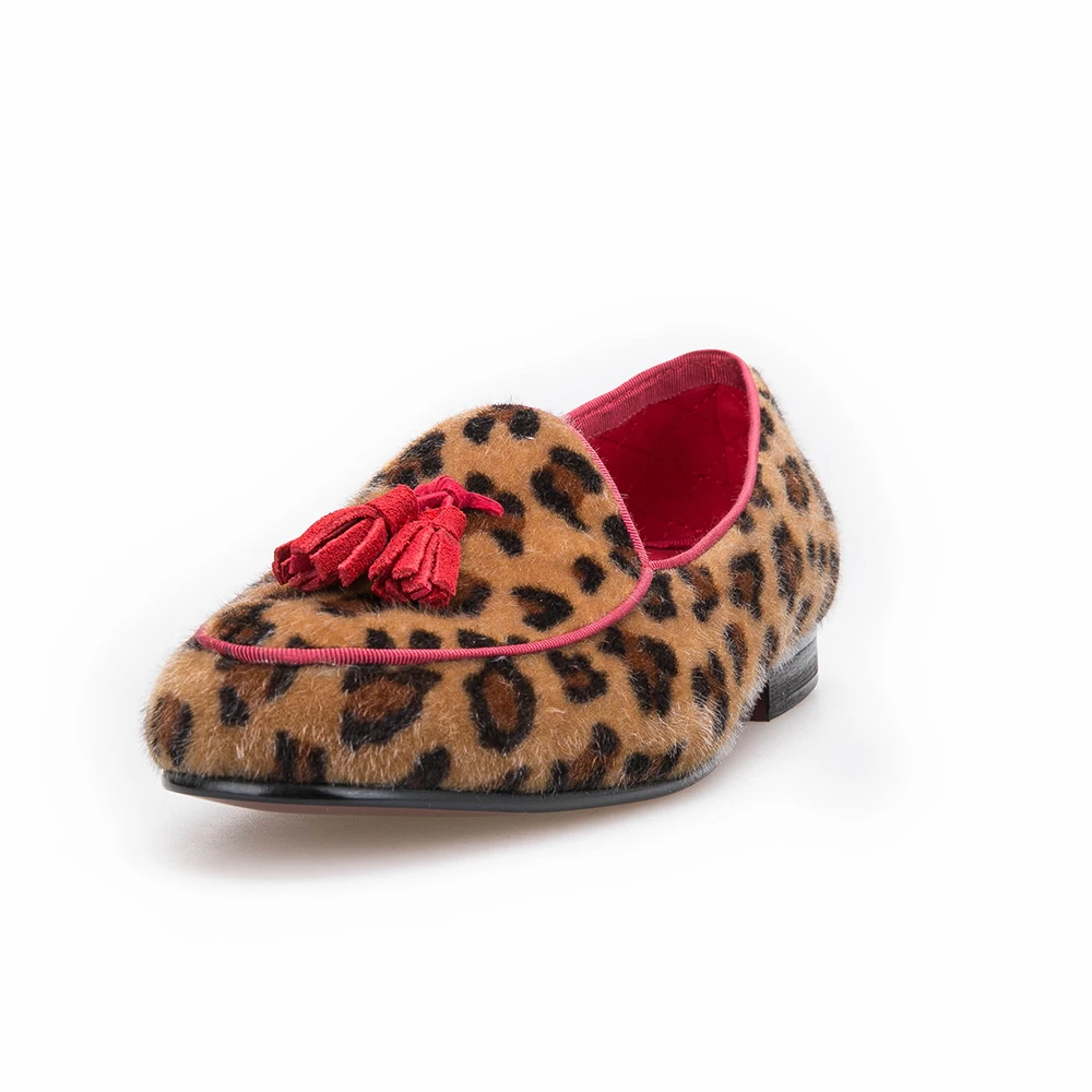 Мужские лоферы, леопардовые бархатные классические мужские туфли на плоской подошве, обувь с кисточками