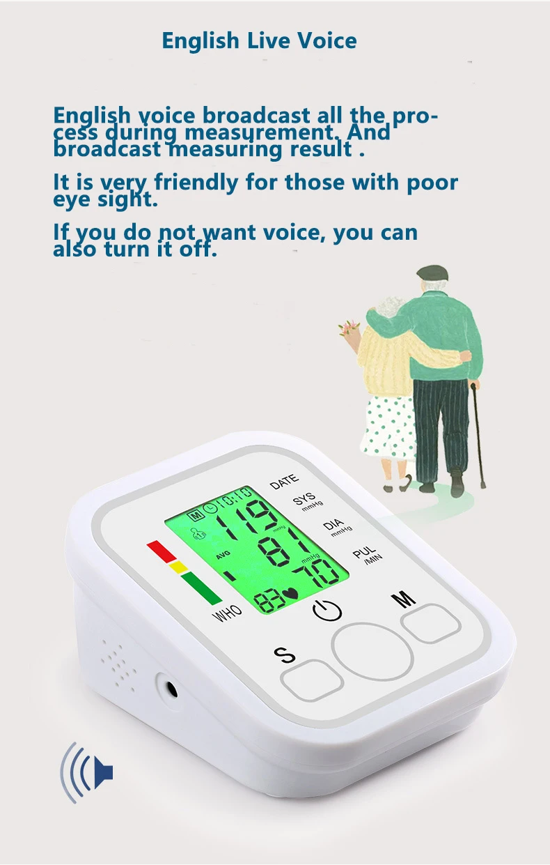 Полностью автоматический наручный электронный сфигмоманометр, бытовой сфигмоманометр, голосовое вещание на английском языке, измеритель артериального давления