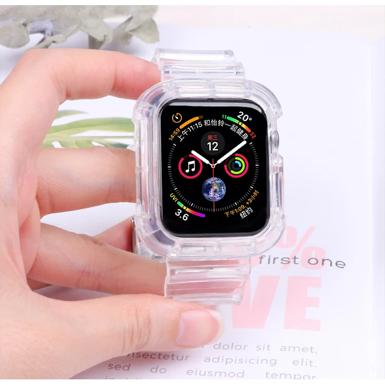 Чехол и ремешок для Apple Watch Band 42 мм 38 мм, мягкий силиконовый прозрачный браслет для iWatch series 5 4 3 6 se 44 мм 40 мм, аксессуары для часов