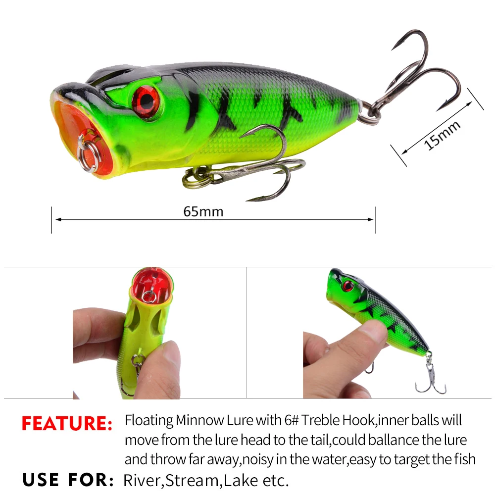 1 шт. рыболовные приманки 65 мм10g5 топвотер Поппер приманка 5 цвет...