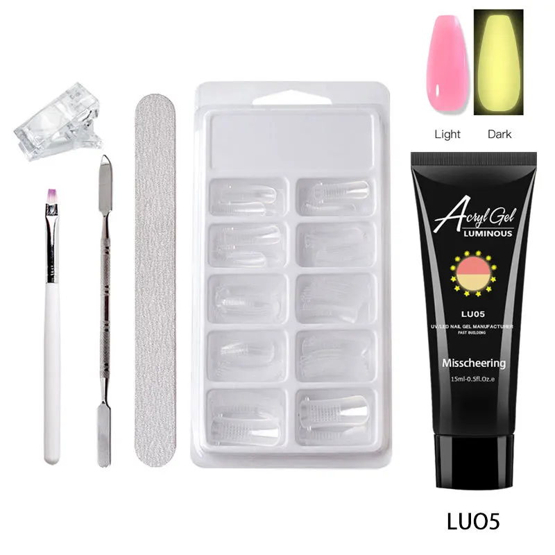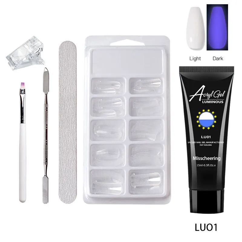 Набор для наращивания акриловых ногтей, профессиональный светящийся удлинитель для ногтей, 15 мл, набор для быстрого наращивания ногтей, УФ-гель для ногтей, белый цвет