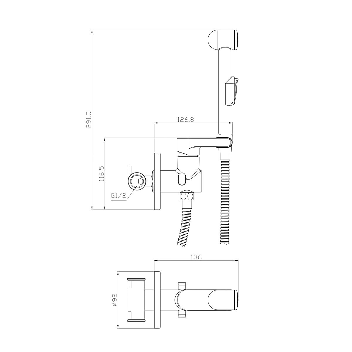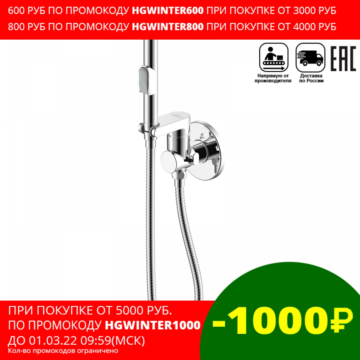 - Аксессуары в комплекте (шланг 1,2 м, лейка для биде с нажимным механизмом)