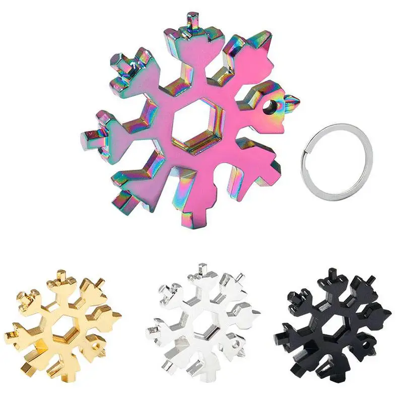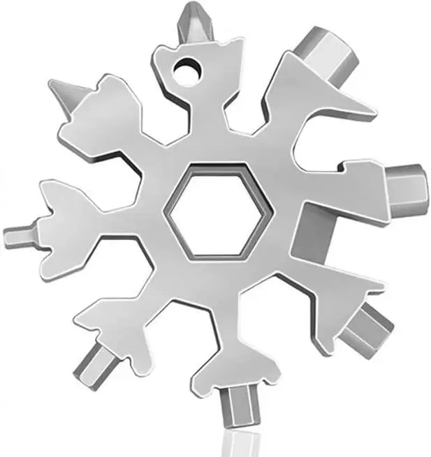 Многофункциональный инструмент в виде снежинки 18 в 1, многофункциональный инструмент, брелок для ключей, отвертка в виде снежинки, инструмент в виде снежинки, брелок для карт, уличный