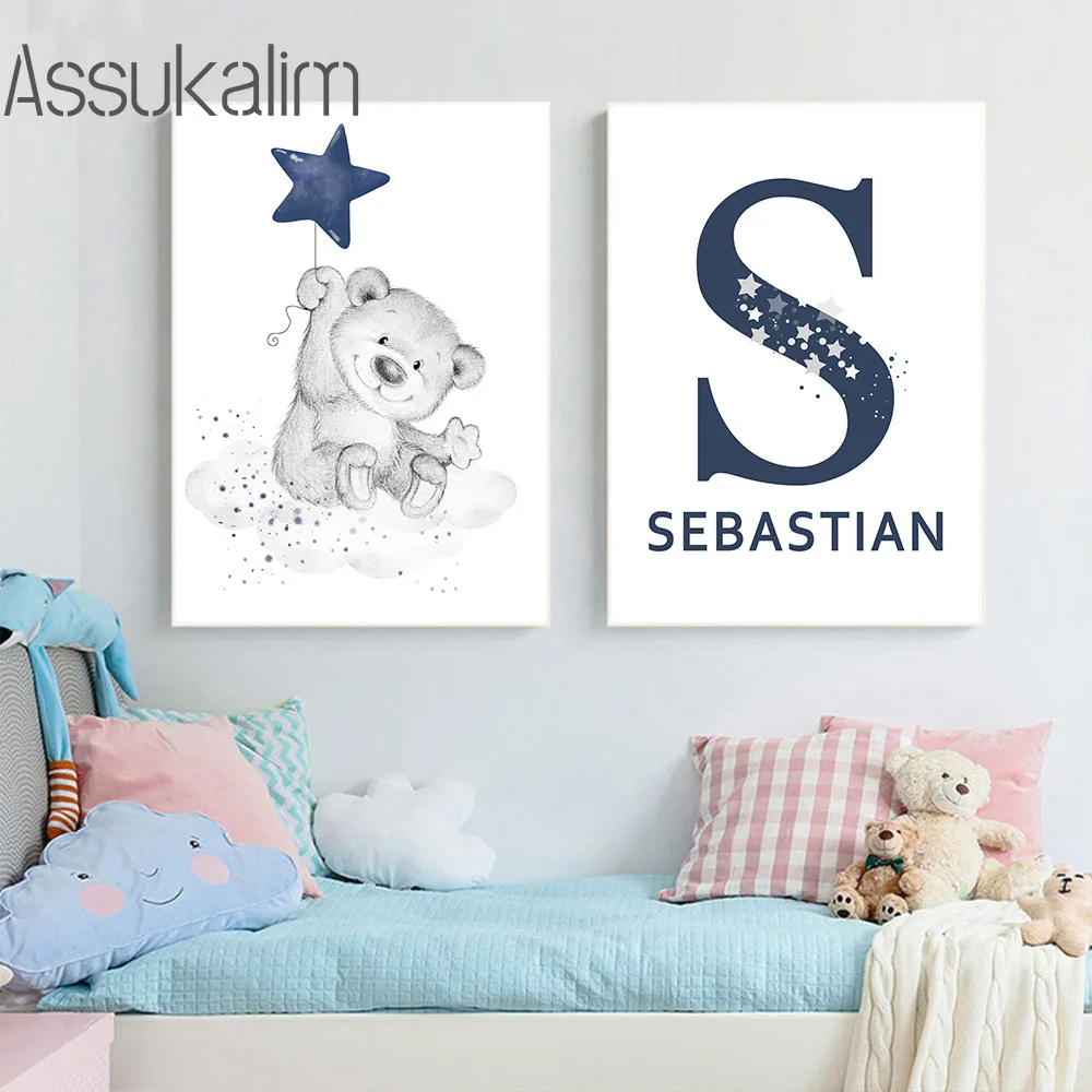 Настенные постеры с изображением медведя, Картина на холсте в скандинавском стиле для детской комнаты, декор для спальни, с облаком, звездой