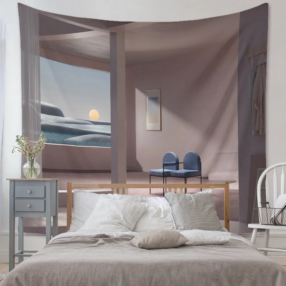 Домашний гобелен Ins, украшение для спальни, задний фон, ткань, окно, пейзаж, гобелен, настенный художественный Настенный Чехол