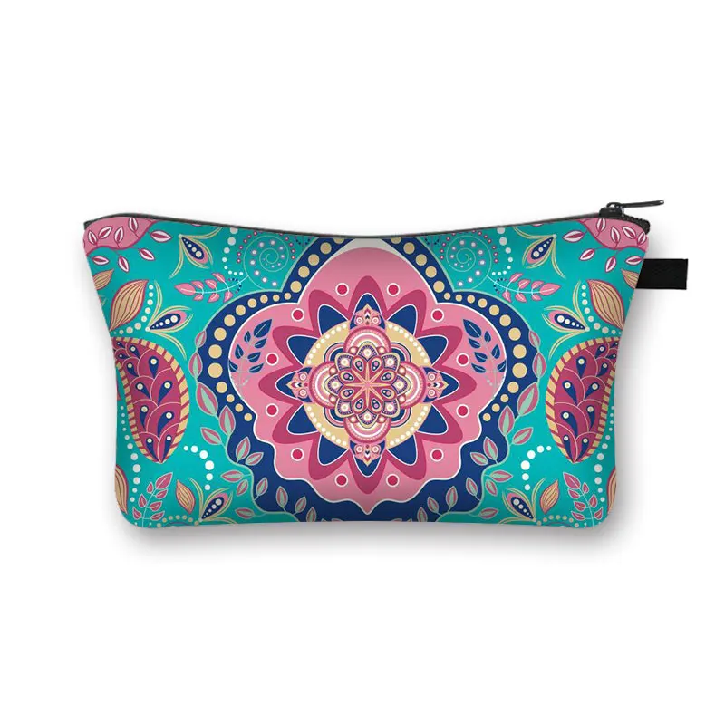 Мандала Цветочный принт косметички Для женщин Макияж сумка женская разноцветным узором милые косметический чехол Pouchs для путешествий