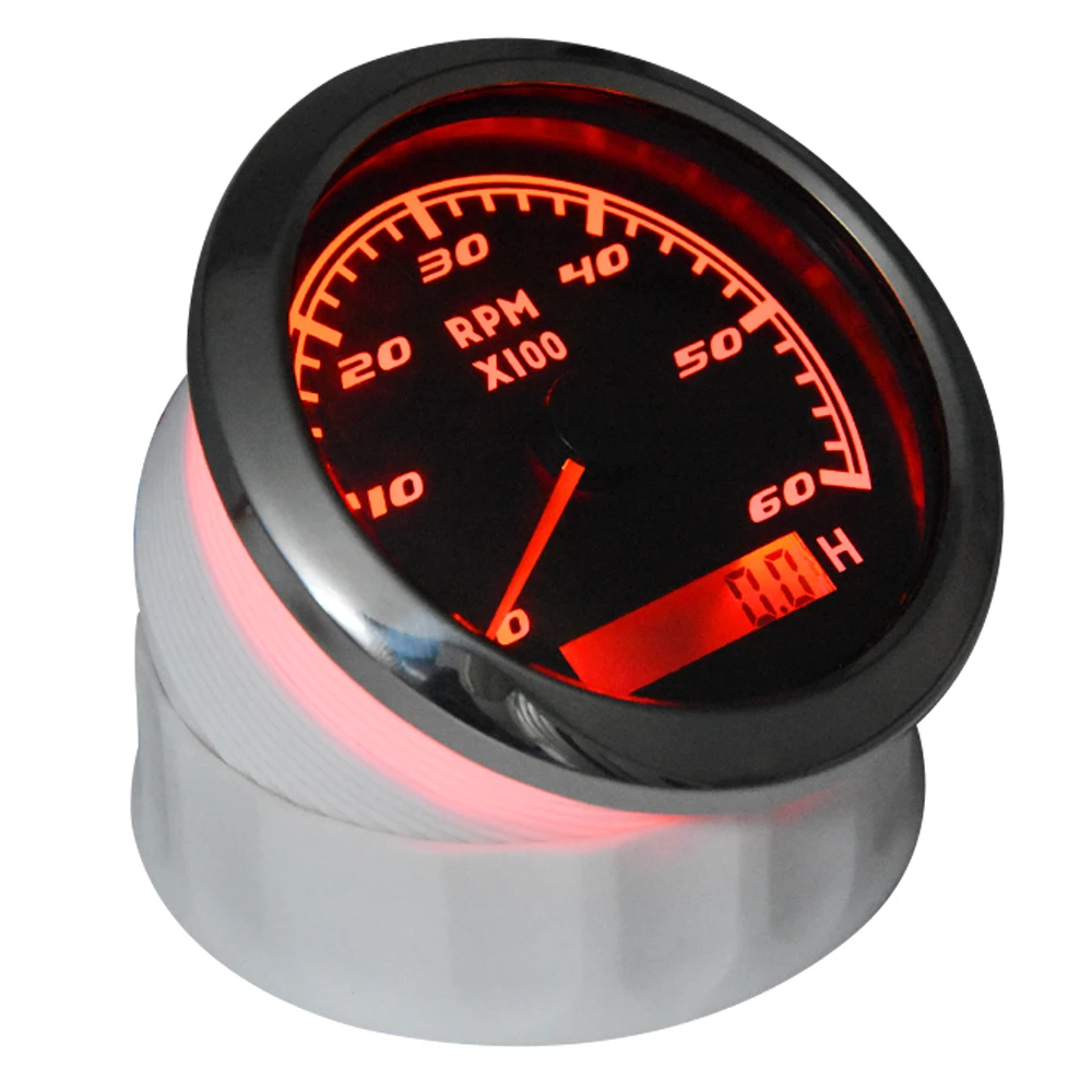Tachometer With Hourmeter 85MM Tacho Gauge Pulse 12V/24V for Marine Boat Yacht 6KRPM Speed Meter Gauge Waterproof 316 SS