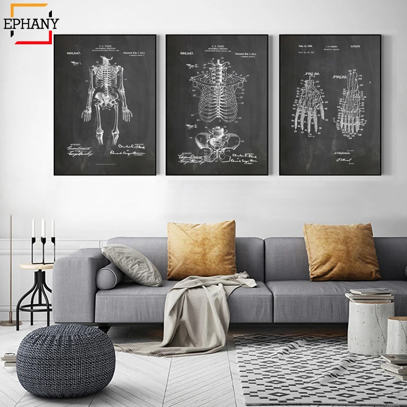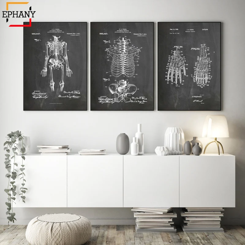 Плакаты с изображением скелета медицинского, черно-белого цвета