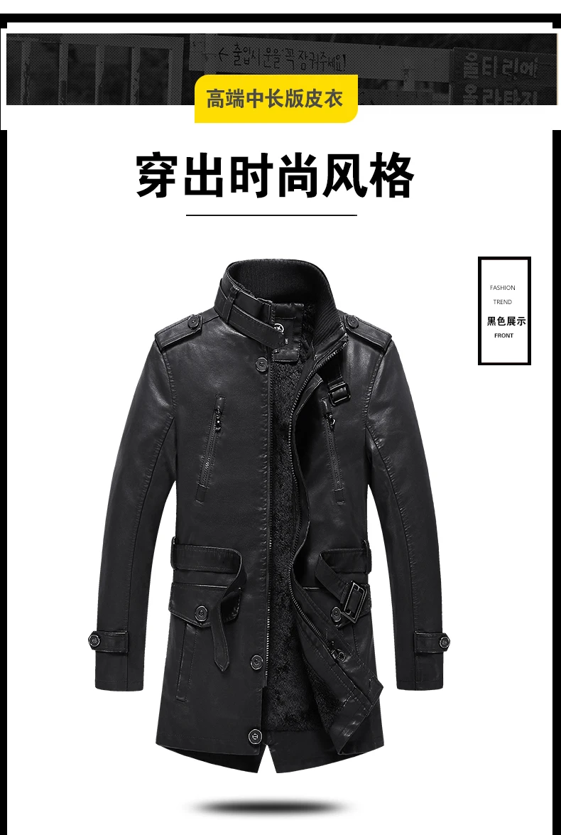 Качественная кожа для мужчин, зимние мужские флисовые кожаные куртки, бархатная Толстая кожаная куртка средней длины с меховым воротником, мужская куртка