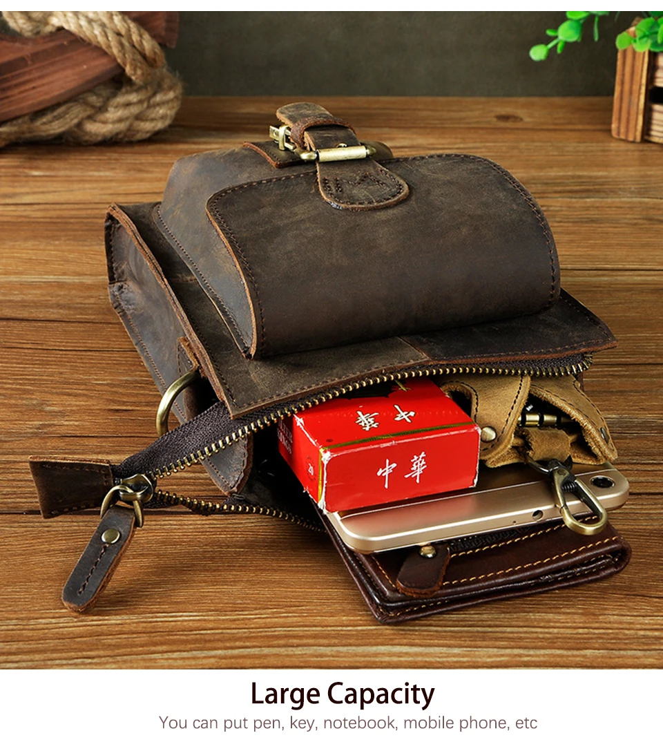 Качественная кожаная мужская повседневная сумка-мессенджер в стиле ретро кофейного цвета, многофункциональная поясная сумка, забавная поясная сумка, летняя сумка для телефона 6402