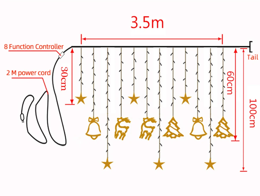 Прямая продажа с фабрики, светодиодный светильник для занавесок, подвеска в виде рождественской елки с колокольчиком, оленем, Новогоднее украшение для комнаты, общежития, гостиной, светильник