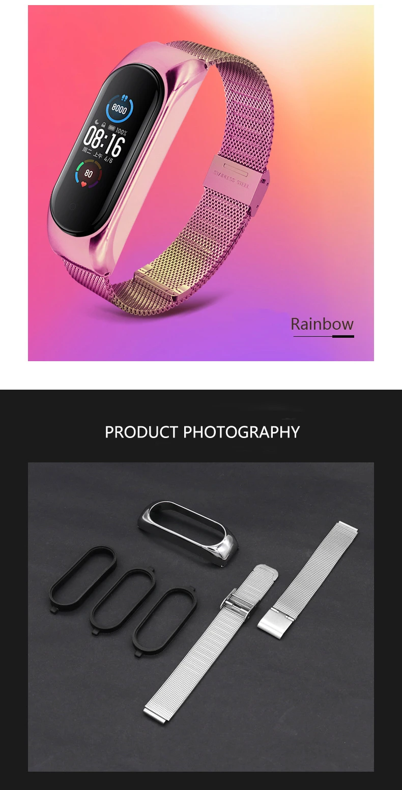 Package Contents1 x Mi band 3/4/5/6 strap metal(No including hust)