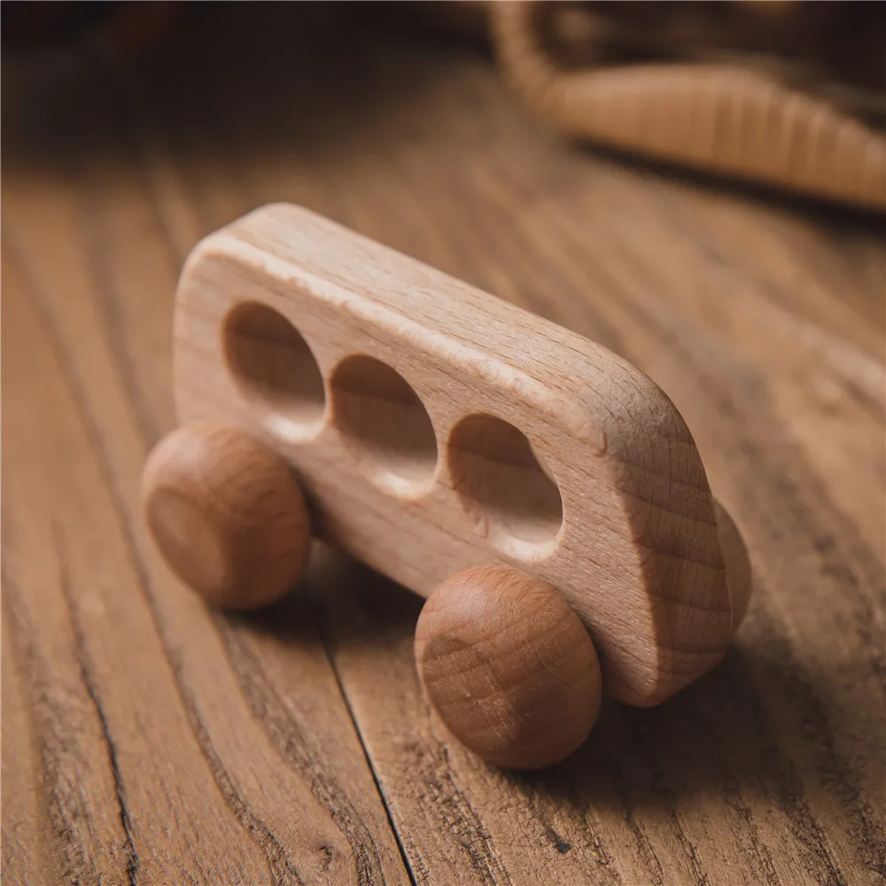 Деревянные игрушки Монтессори на заказ, 4 шт., обучающая машинка из Букового дерева, детская мультяшная машинка, игрушка, детский деревянный подарок для детей