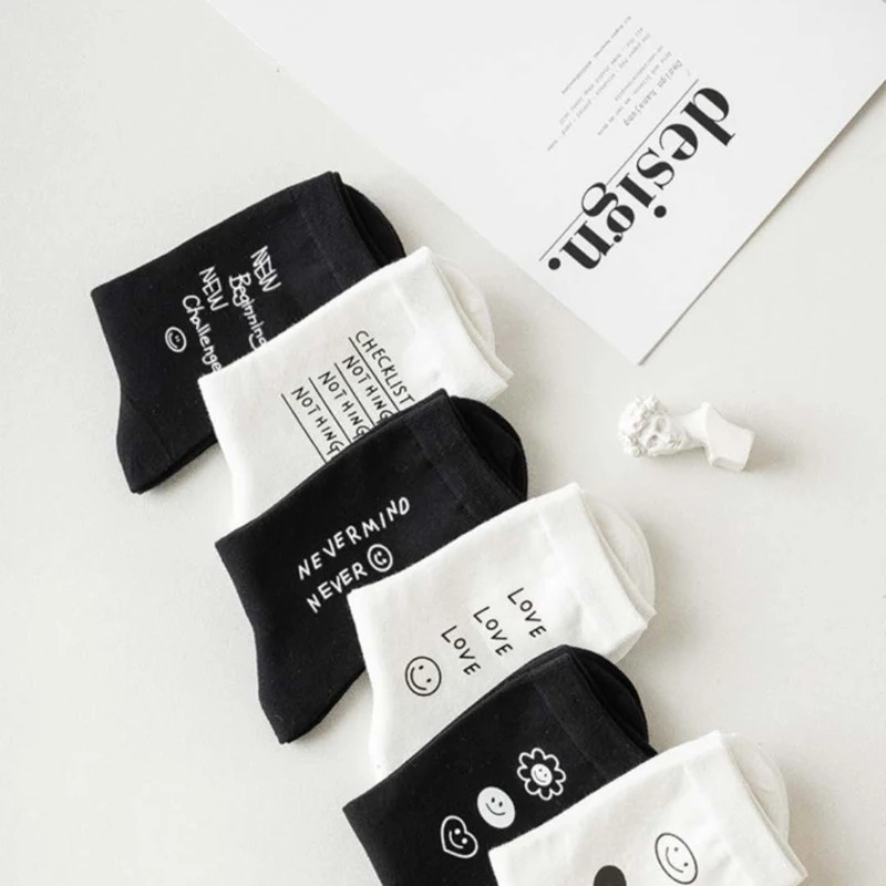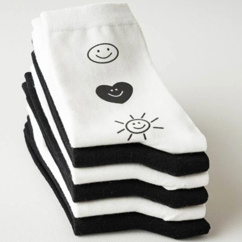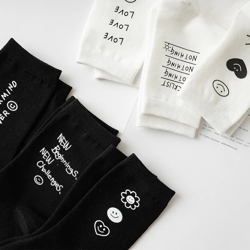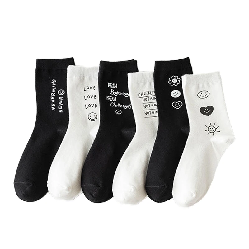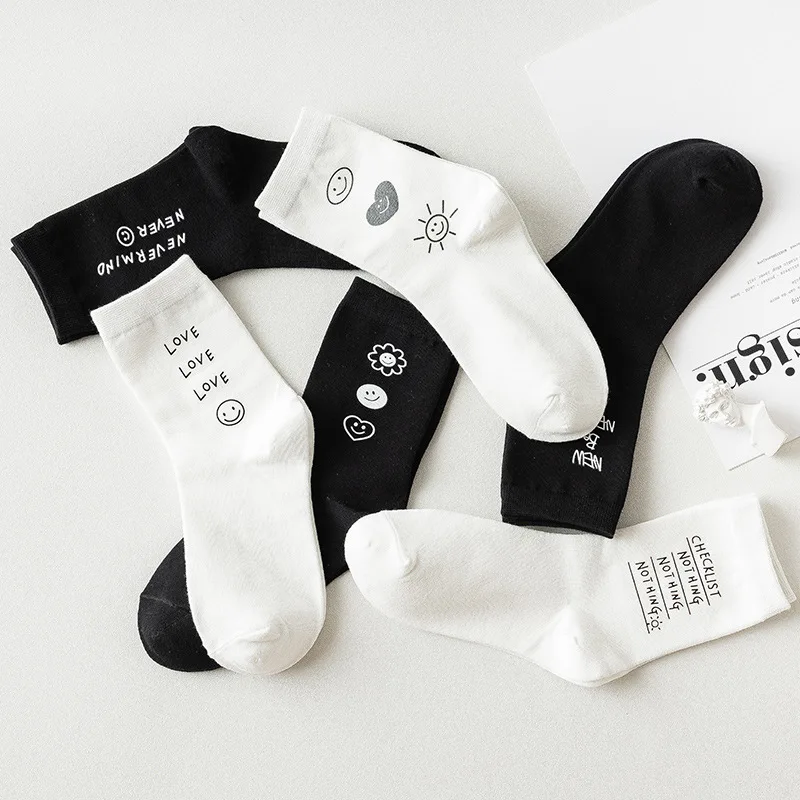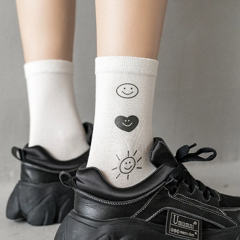 1 пара осенне-зимних черно-белых женских носков милые хлопковые носки со смайликом и сердцем повседневные Модные Женские однотонные носки