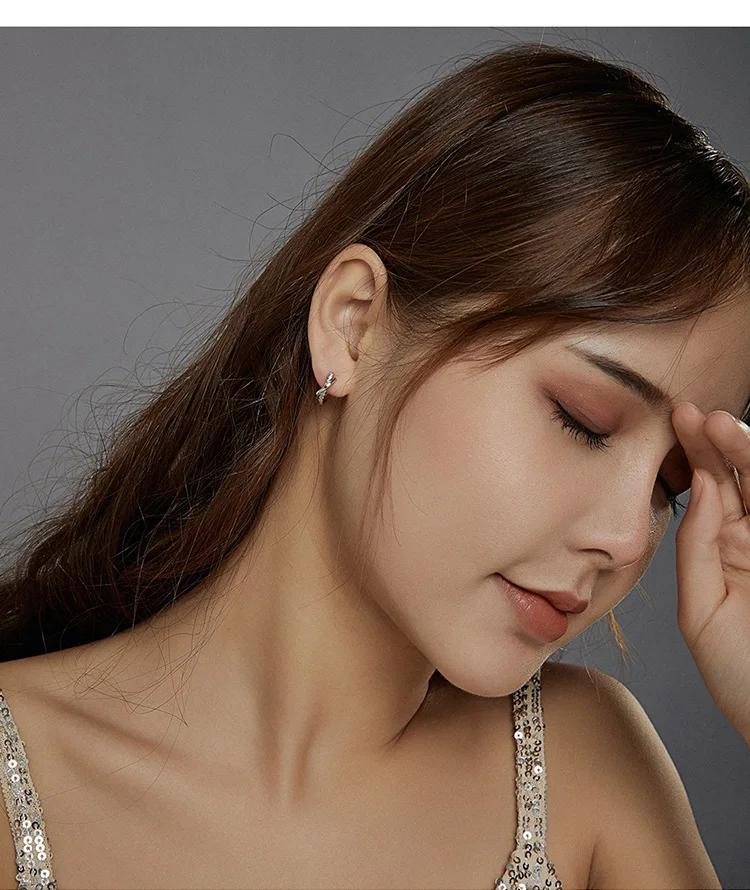 Женские серьги-кольца из серебра 925 пробы с фианитом