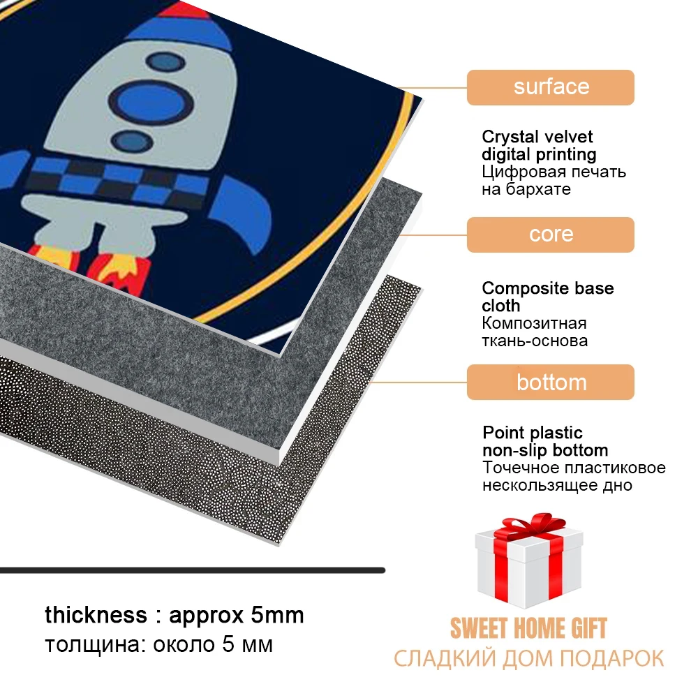 Мультяшный Детский ковер для игровой зоны, ковер для ракеты, ковер для гостиной, спальни, ковер из хрустального бархата, противоскользящий напольный коврик для ванной, кухни, коврик для двери