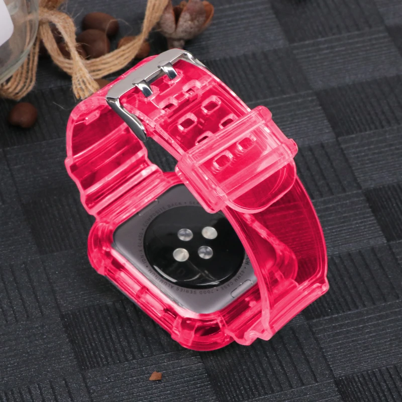 Чехол и ремешок для Apple Watch Band 44 мм 40 мм 42 мм 38 мм, силиконовый прозрачный браслет для iWatch Series 5 SE 6 4 3, аксессуары для часов