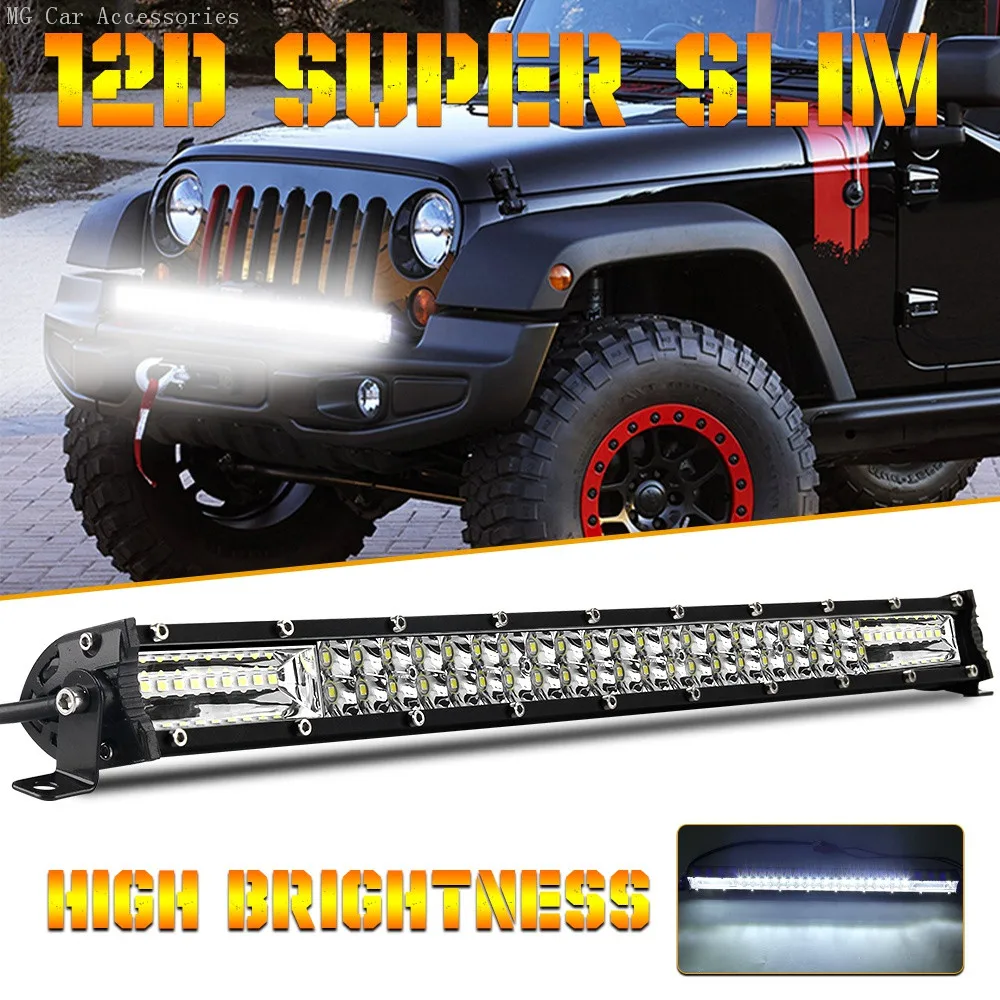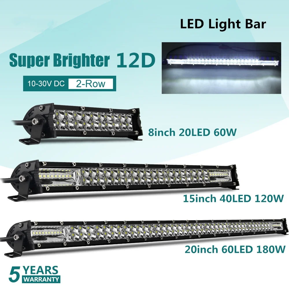 Сверхтонкий светодиодный прожектор 12D, 8 дюймов, 15 дюймов, 20 дюймов, прожектор 60 Вт, 120 Вт, 180 Вт, Светодиодная панель 4x4 для ATV, внедорожников, внедорожников, светодиодный светильник 12 В 24