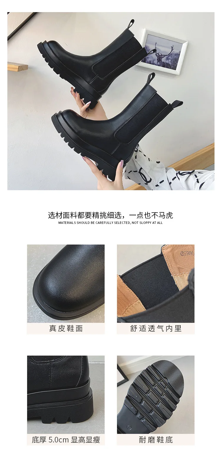 Ботинки женские кожаные, Осень-зима 2021, на толстой подошве