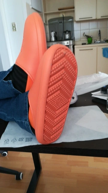 всё наконец-то пришло. Очень долгах доставка и не отслеживалось. более 2х месяцев до Москвы. Я даже открыла спор. Но наконец всё получила. Тапки для дачи самое то - с утра по росе пройти по участку. Но! на фото значительно круче смотрятся. Пластик тонкий, в нутри не мех, а... тряпочка для протирки пыли)) расчитывать что это не резина, ЭТО на один сезон и один сезон МАКСИМУМ. в общем цена им не 7-8$...а не больше 3-4))) конечно веселенькие... И они очень легкие. а ещё воняют на всю квартиру. В общем "чтобы весело на даче" можно взять, а можно и до Гипермаркета ближайшего доехать и взять пострашнее, но прочнее)))