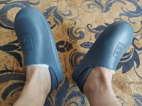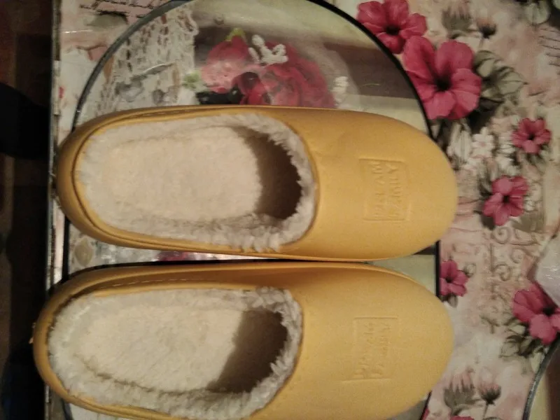 Очень мягкие и удобные тапочки. С удовольствием ношу их. Можно использовать как для дома, так и для работы в саду.