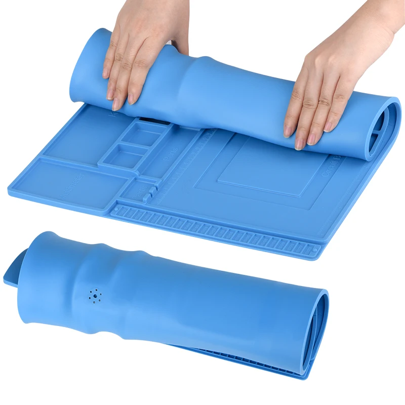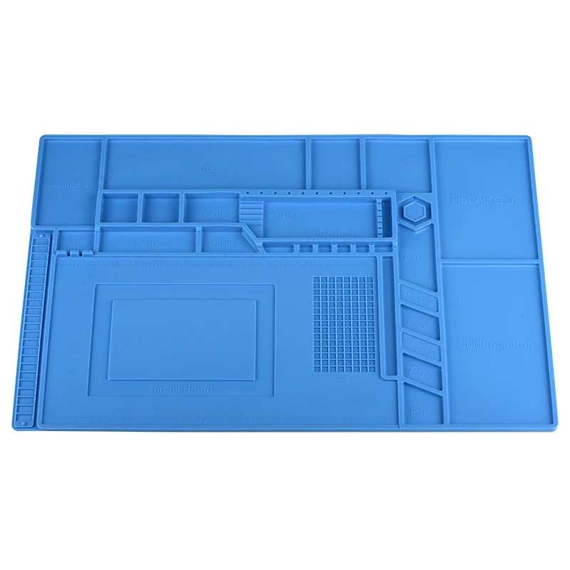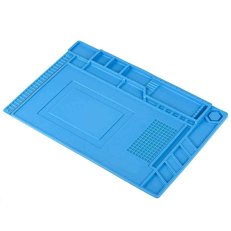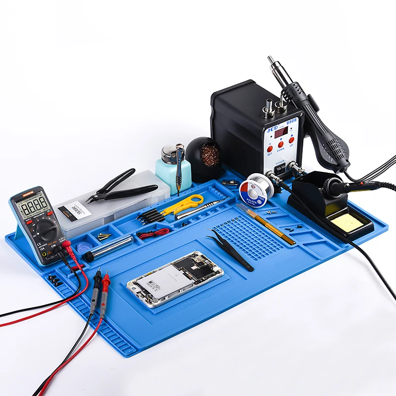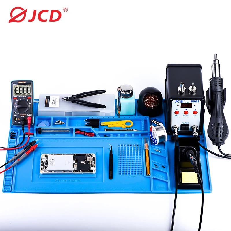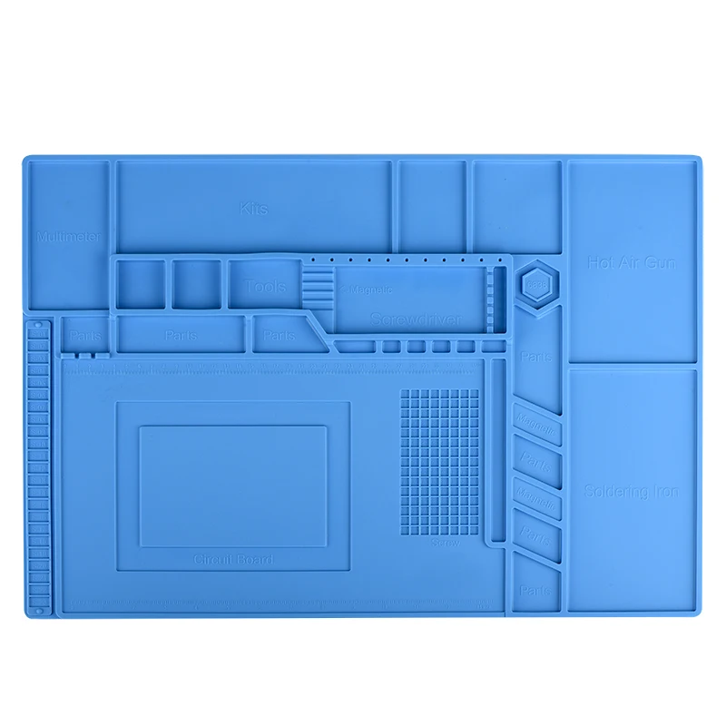 Теплоизоляционный силиконовый коврик JCD для ремонта паяльника с линейкой со шкалой и расположением винтов для паяльника, телефона, сварочный инструмент сделай сам