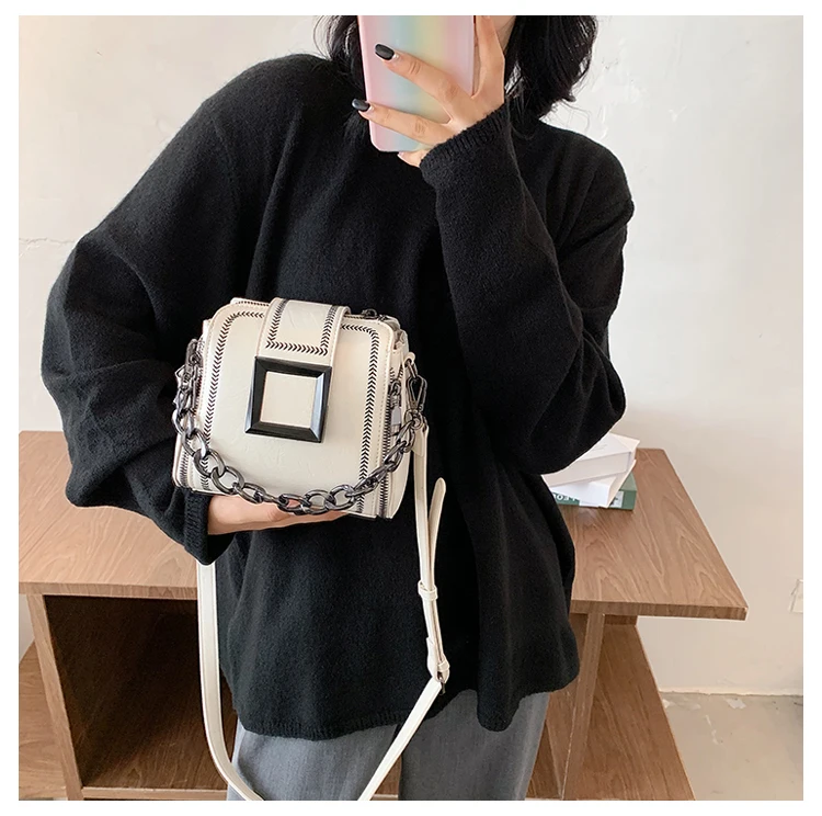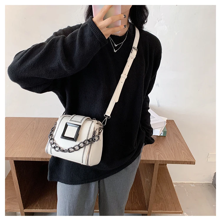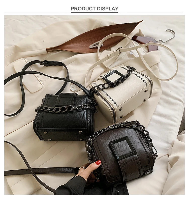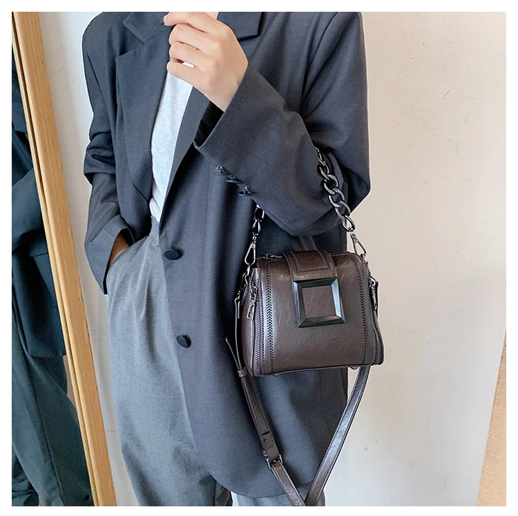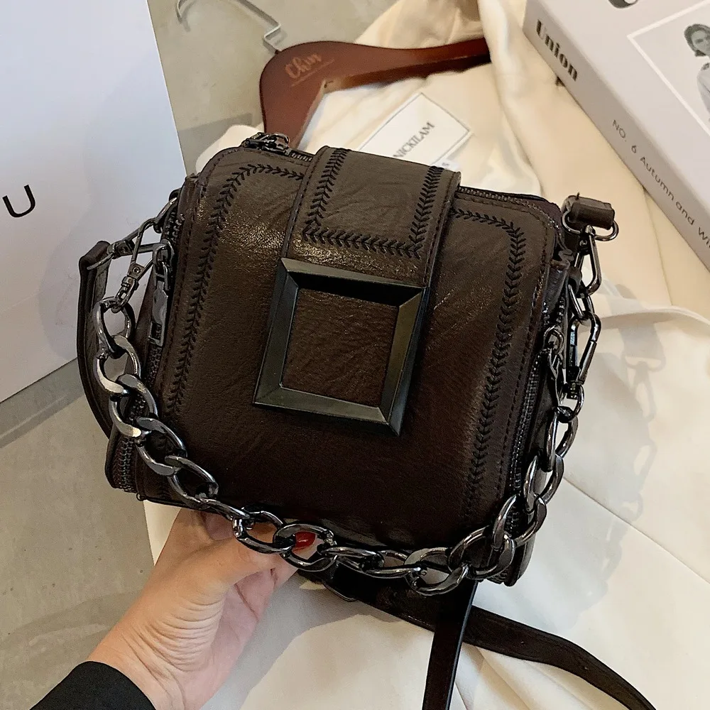 Сумка-мешок женская из искусственной кожи, с цепочкой, в стиле ретро