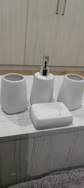 Комплект из 4 предметов: фарфоровые наборы аксессуаров для ванной комнаты с 1 дозатором мыла, 1 мыльницей и 2 стаканами, в которых можно хорошо организовать использование туалетных принадлежностей.Материал и размер: белый набор аксессуаров для ванной комнаты изготовлен из высококачественной керамики, что делает его гладким и благородным.Идеальные подарочные наборы для праздника: Набор для ванны отличный подарок для вашей семьи или друзей. Также можно использовать в качестве подарка на день матери, Рождество, День благодарения, пасхальный подарок.