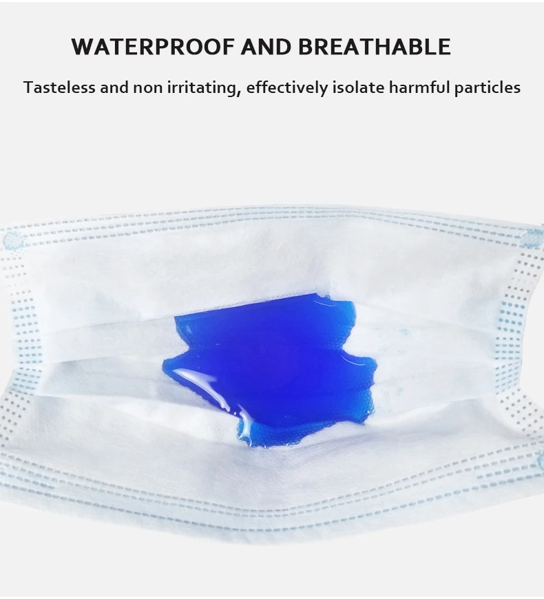 Маска одноразовая непромокаемая с 3-слойным фильтром, 100 шт.