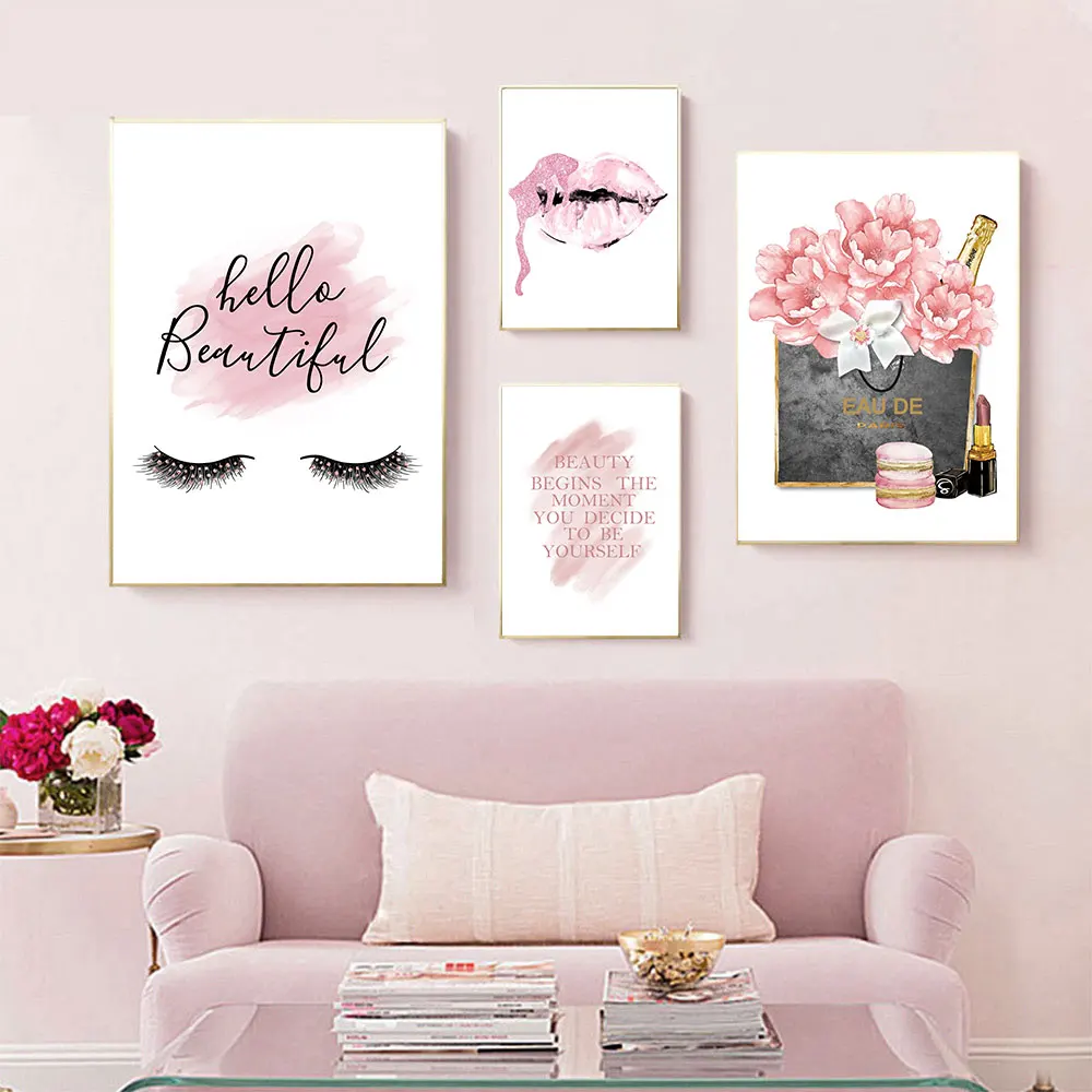 Макияж печатает губы плакаты пион Холст Картина ресницы Искусство Печать Мода плакат букет настенные фотографии для гостиной Декор