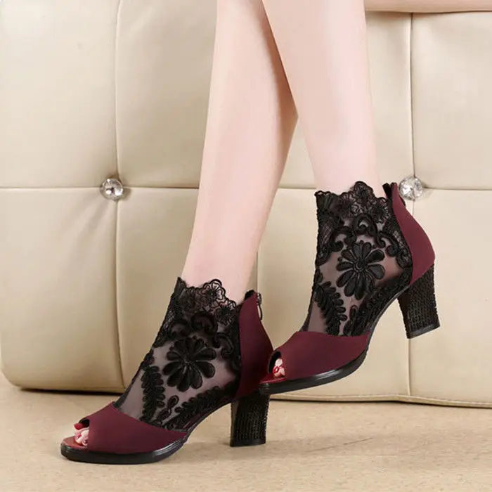 Туфли женские кружевные, пикантные сандалии, открытый носок, высокий каблук, сетчатая обувь, европейски и американский стиль, весна-лето 2020