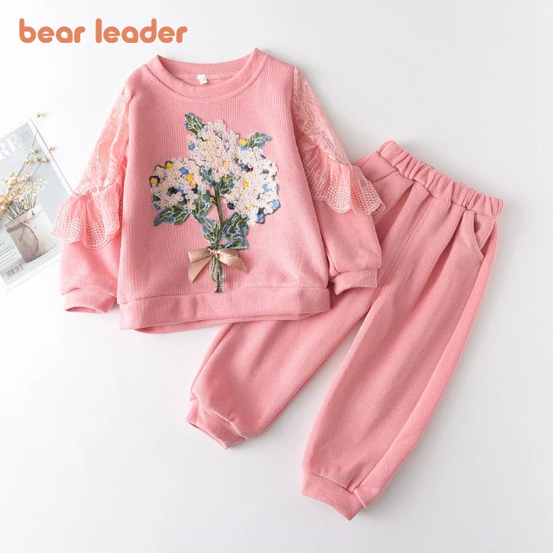 Детские повседневные комплекты одежды Bear Leader, новая осенняя одежда с цветочным принтом для девочек, спортивные костюмы с длинными рукавами, милая одежда с цветочным принтом