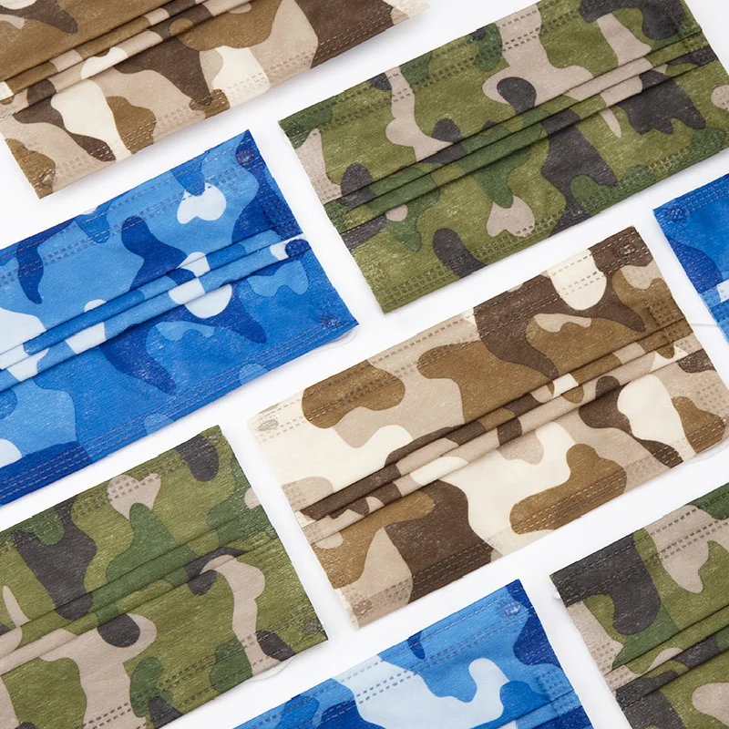 Камуфляж для лица маска для рта одноразовые маски tela Non Wove 3-слойные фильтры дышащие маски с петлями для ушей взрослые маски