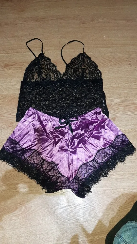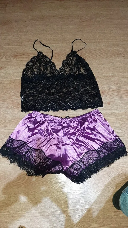 Новейшее поступление, модная женская пижама, Сексуальный Атласный пижамный комплект, Женская кружевная Пижама с V-образным вырезом, кружевной топ без рукавов и шорты, комплекты