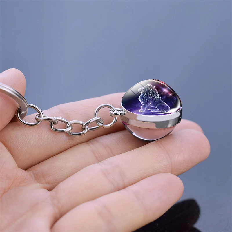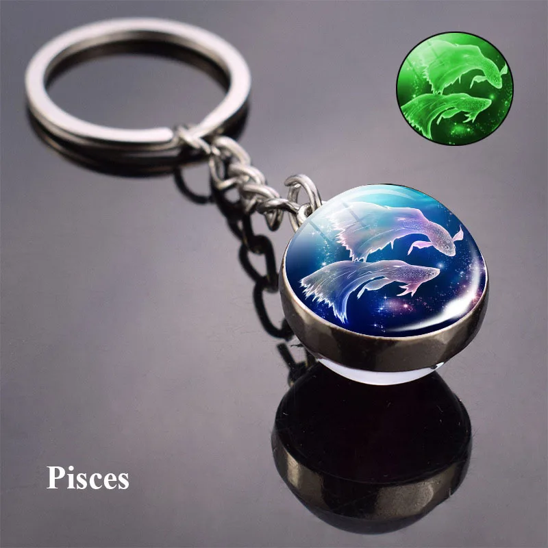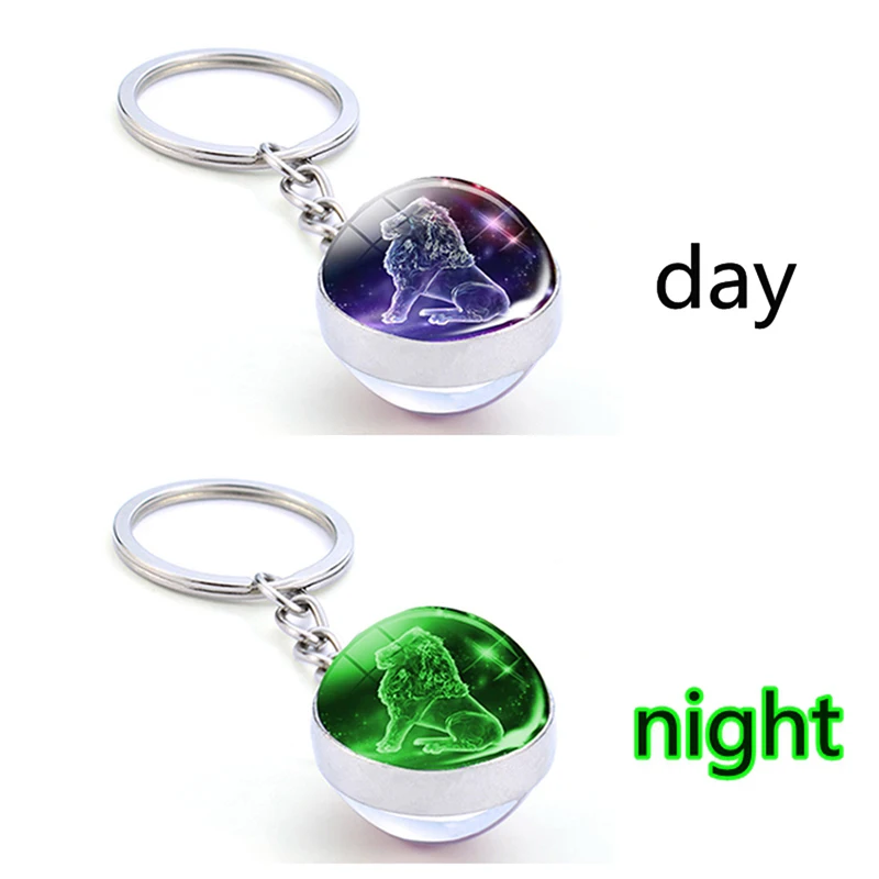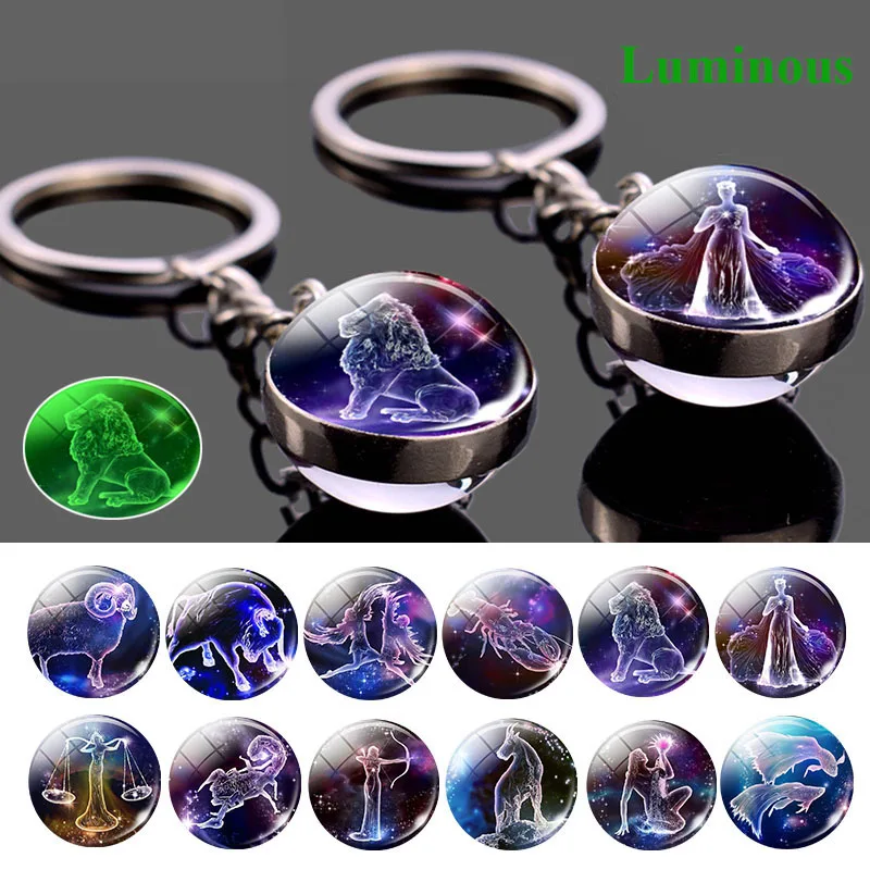 12 подвесных колец с созвездием, двухсторонняя светящаяся цепочка для ключей, креативная цепочка для ключей с зодиаком, стеклянный шар, подвесное кольцо для ключей, ювелирное изделие