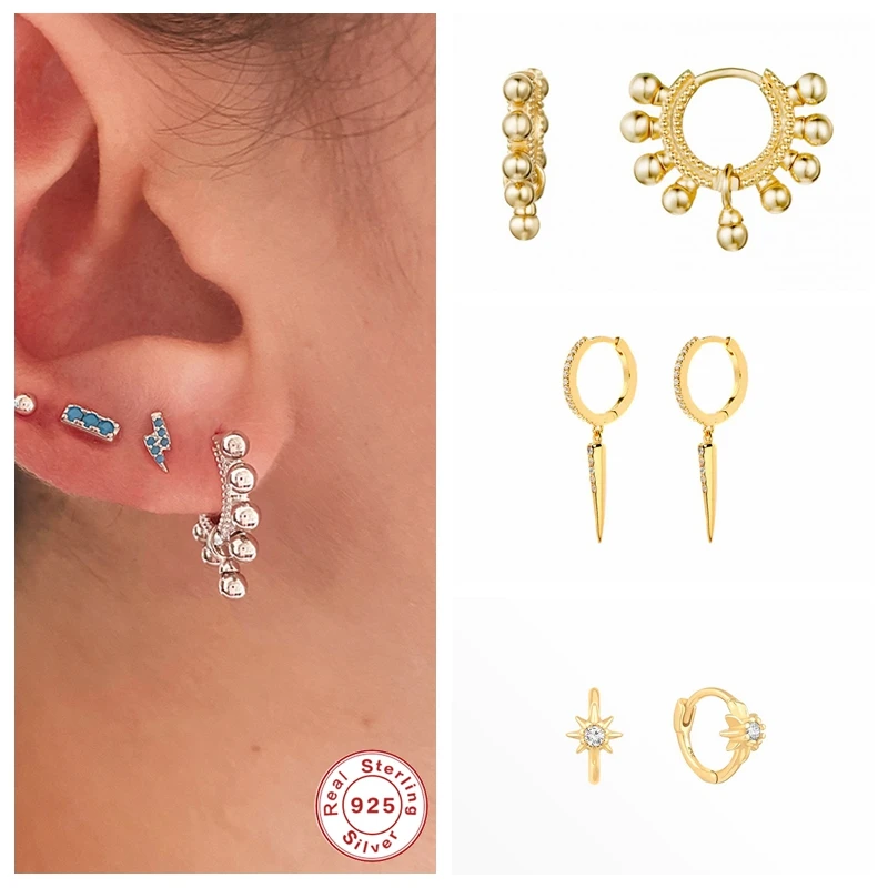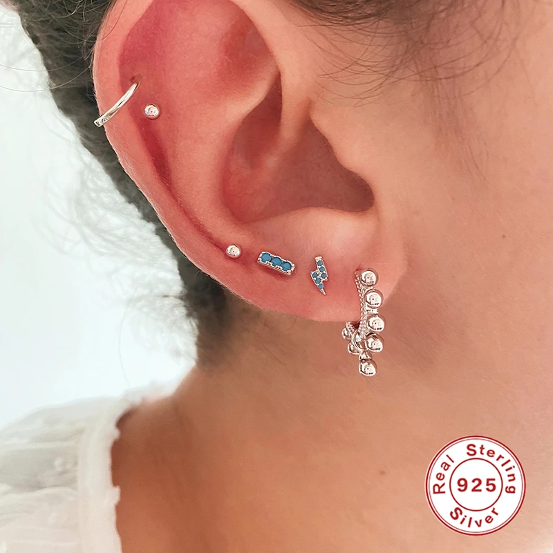 AIDE 925 стерлингового серебра маленькие бусины круг серьги-кольца ...